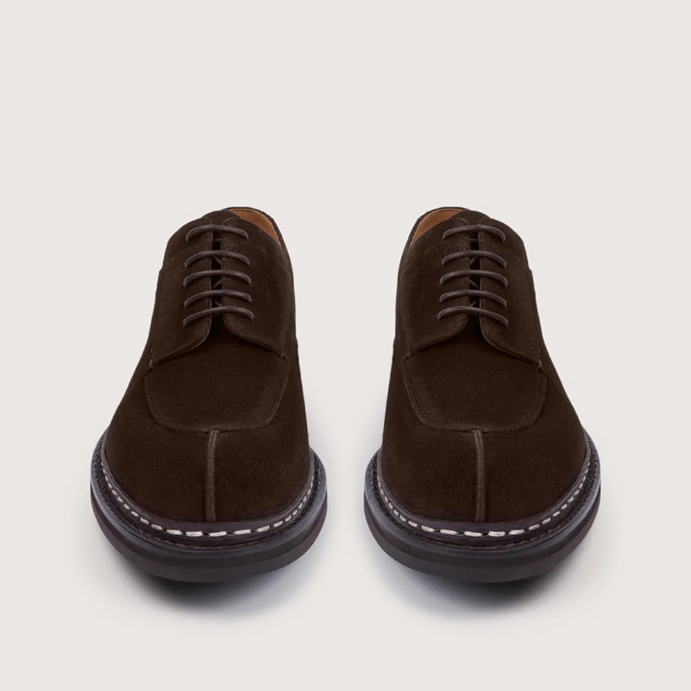 Version épurée du modèle Ginkgo, le derby Catalpa incarne un classique de la maison. Il affirme sa personnalité à travers sa semelle originelle cousue, ses détails de couture main, sa languette à soufflet et son chaussant d’un confort exceptionnel.