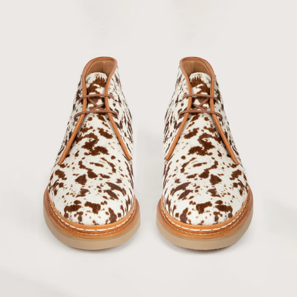 Légère et confortable, la Desert Boot Genêt pour Femme revêt, dans sa version hivernale, une tige en cuir de vache tachetée.