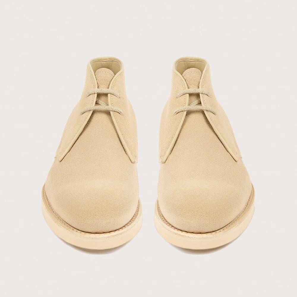 LĂ©gĂšre et confortable, la Desert Boot GenĂȘt pour femme revĂȘt, dans sa version estivale, une tige en veau velours de couleur claire. L'unique bottine qui se porte aussi bien l'Ă©tĂ© que l'hiver.