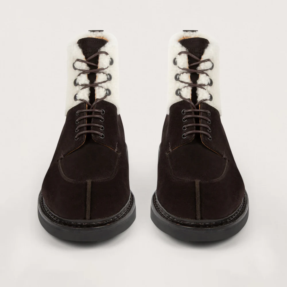 La Bottine Grenadier pour homme est un modèle inspiré de l'emblématique bottine Ginkgo, dans une version plus légère et souple. Avec son col signature, cette bottine en veau velours imperméable et son col en Mouton est montée sur une semelle ultra-légère en caoutchouc naturel.
