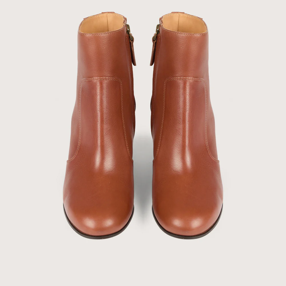 Une bottine à talon qui allie féminité, élégance et confort. Son design épuré est sublimé par un jeu de découpes en cuir qui lui confère une allure affirmée. Pratique et raffinée, elle se pare d’une fermeture zippée pour faciliter l’enfilage.