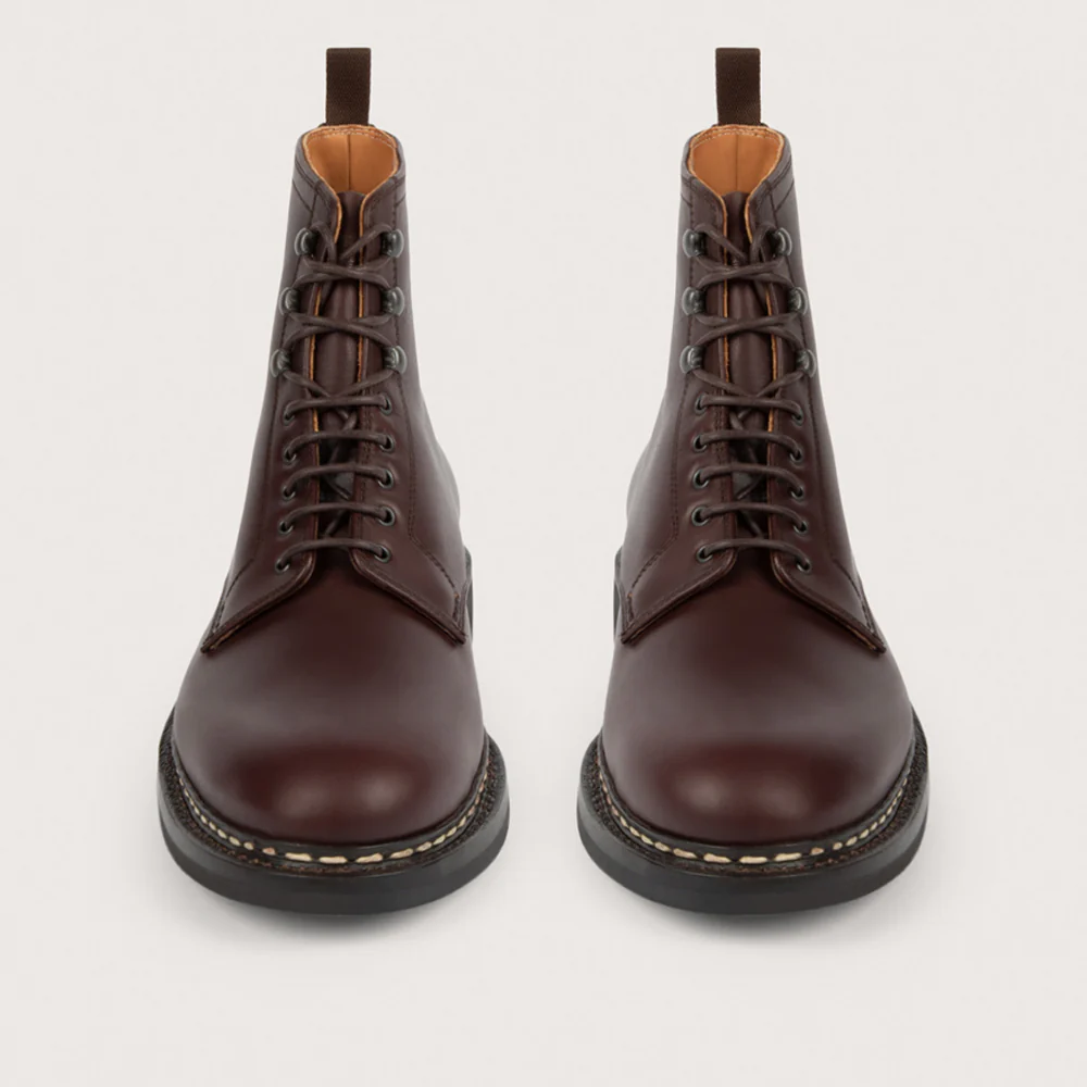 À mi-chemin entre la bottine d’officier et la chaussure de travail, le modèle Hêtre incarne une dualité assumée. Son laçage précis et ses crochets robustes en font un compagnon aussi fonctionnel qu’élégant. Fidèle à l’héritage de la maison, il se distingue par son authentique cousu Norvégien, son cuir d’exception, le cuir Suportlo, et sa semelle crantée cousue de part en part. Chaque détail témoigne d’un savoir-faire méticuleux : points de couture réalisés à la main, languette à soufflet, finitions irréprochables et matelassage protecteur au niveau des chevilles.
