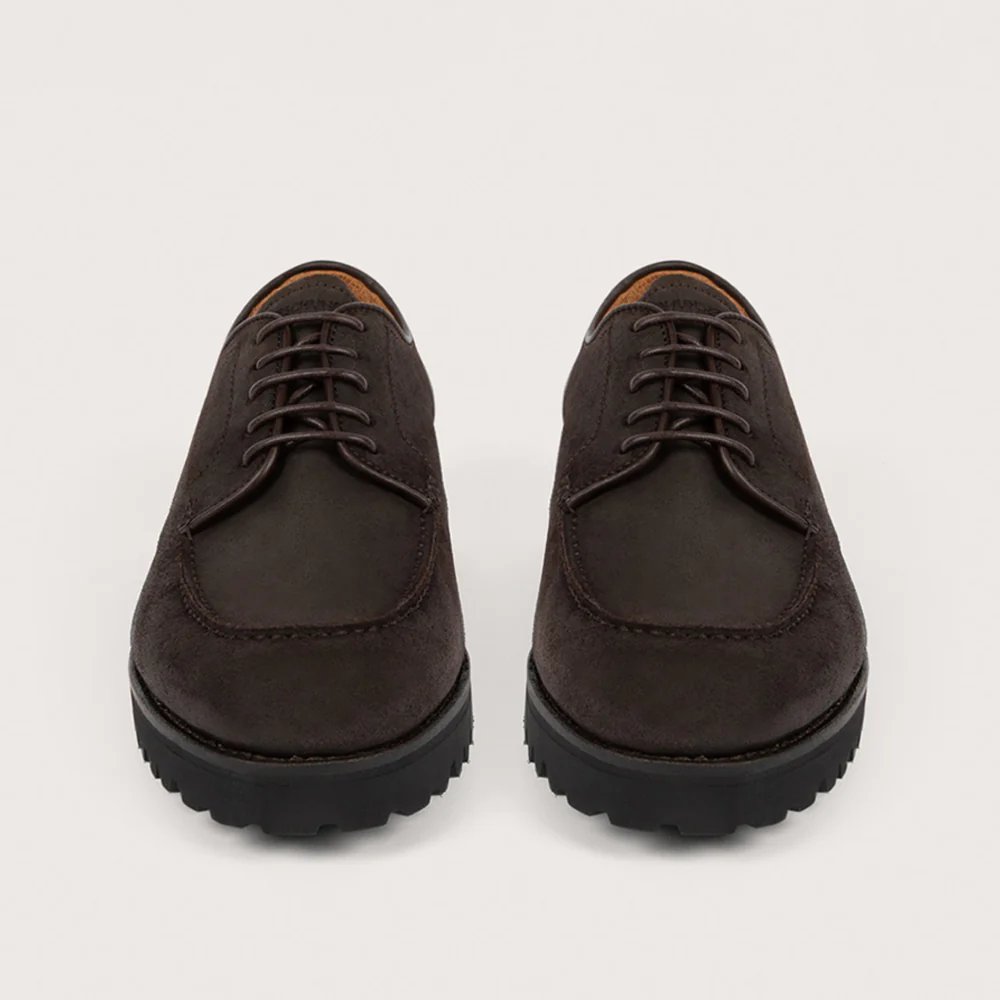 Inspiré des chaussures de golf des années 50, le derby Ilex revisite un classique avec caractère et authenticité. Doté de cinq œillets et de sa forme généreuse, il se distingue par son plateau cousu main et sa construction en cousu Goodyear, gage de robustesse et de confort.