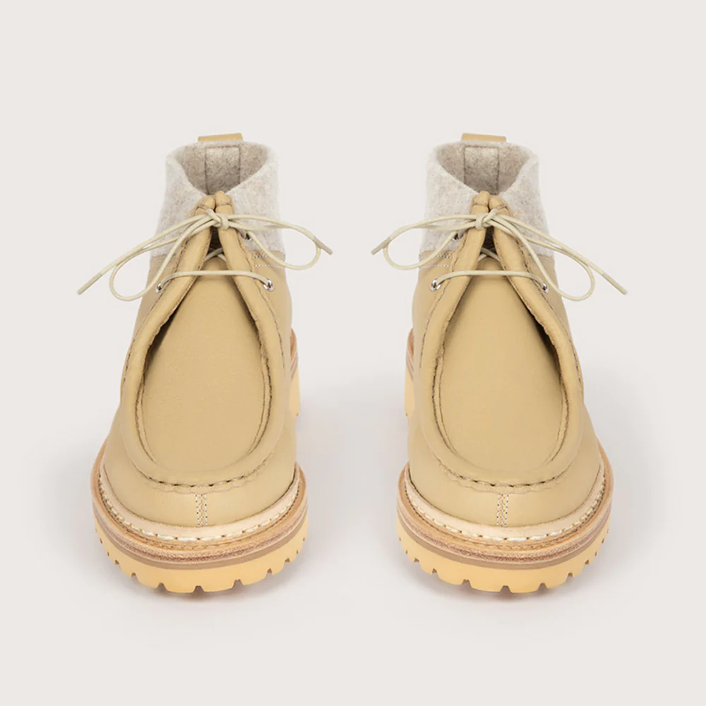 Réalisé selon la technique du cousu Norvégien, savoir-faire originel de la maison, il repose sur une semelle crantée en gomme, pensée pour affronter la saison avec assurance et allure.