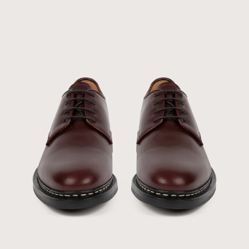 - Conçu en cuir de veau Purecalf, coloris Merlot.
