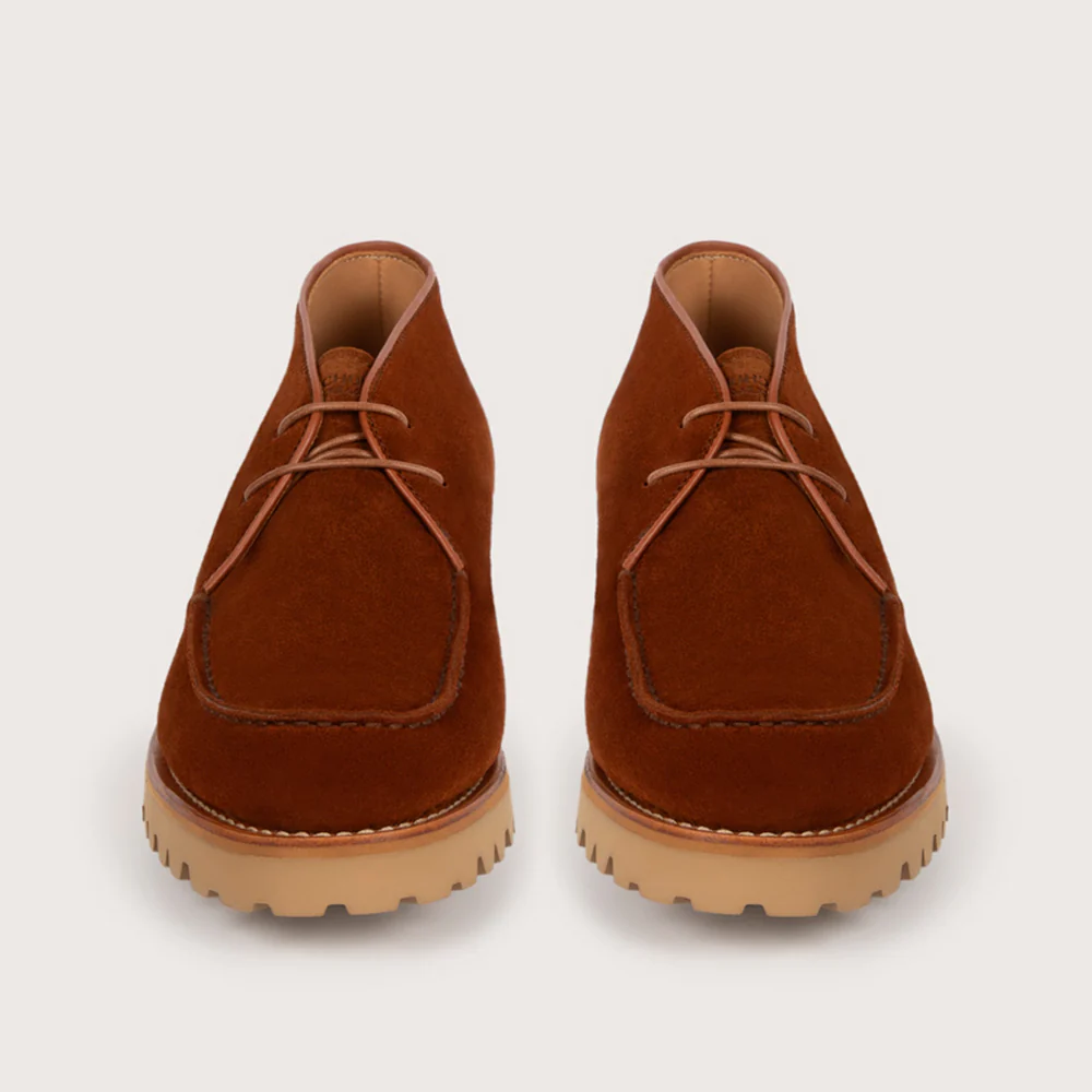 La Desert Boot Pilea est conçue pour offrir Ă la fois style et confort, un choix idĂ©al pour une femme recherchant une chaussure polyvalente et durable. Finitions de bord anglais et points d'arrĂȘt Ă la main apportent Ă ce modĂšle dĂ©contractĂ© la touche de raffinement tout en sobriĂ©tĂ© qui fait notre signature.