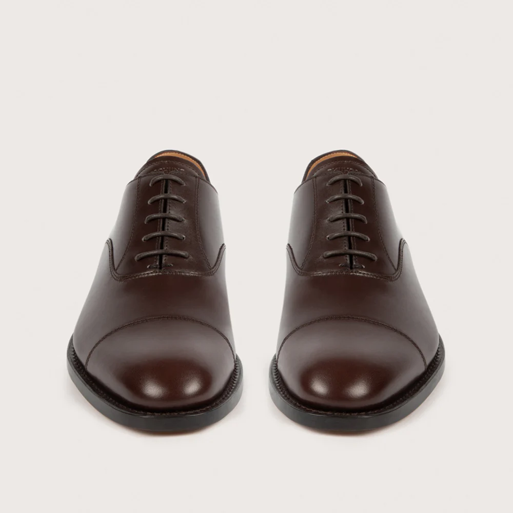 - Conçu en cuir Box : un cuir de veau lĂ©gĂšrement brillant, coloris Moro.Â